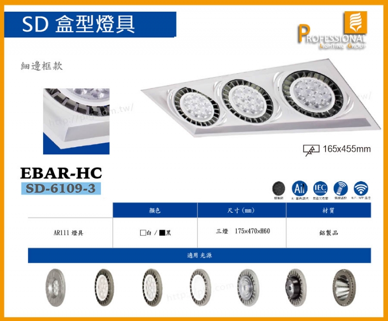 EBAR-HC、SD-6109-3、SD-5099-3 盒燈、細邊框款、三燈