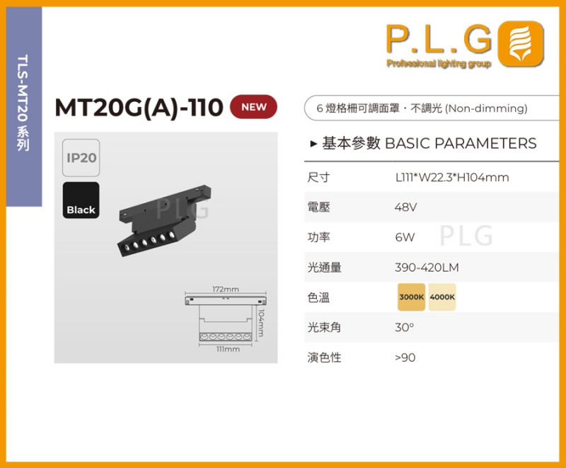 MT20G(A)-110 磁吸軌道燈(6燈格柵可調面罩)