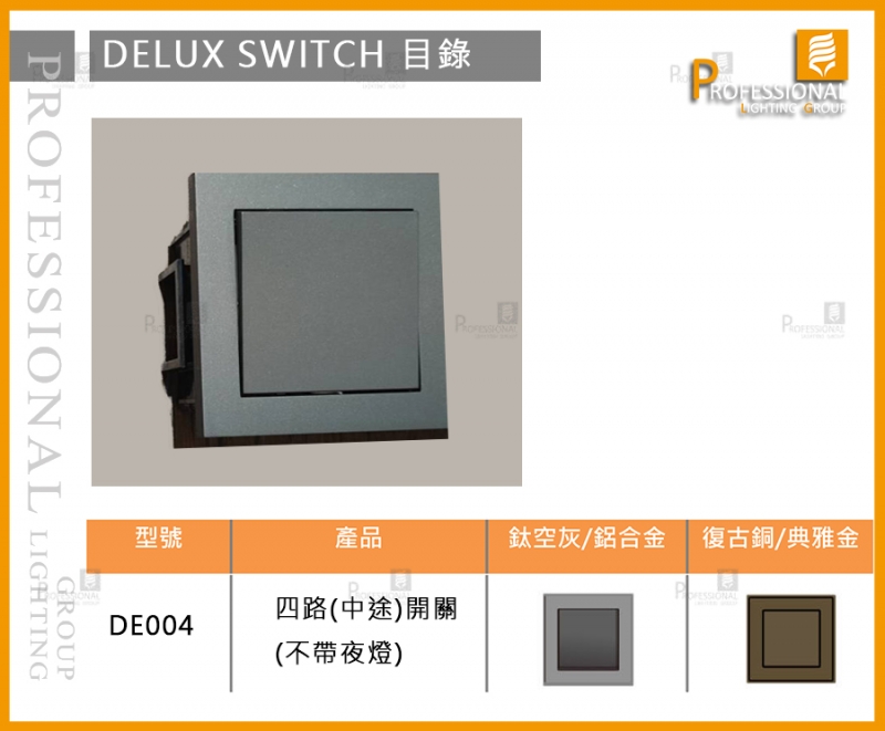 DE004 歐規開關面板 四路(中途)開關(不帶夜燈)