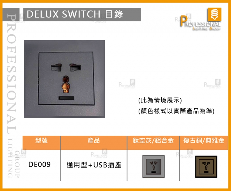 DE009 歐規開關面板 通用型+USB插座
