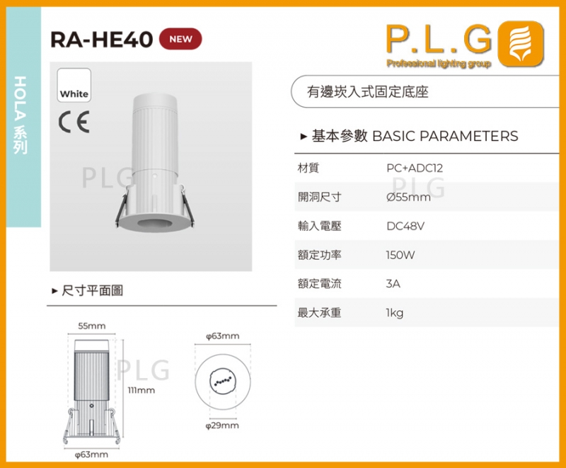 RA-HE40 HOLA系列 有邊崁入式固定底座