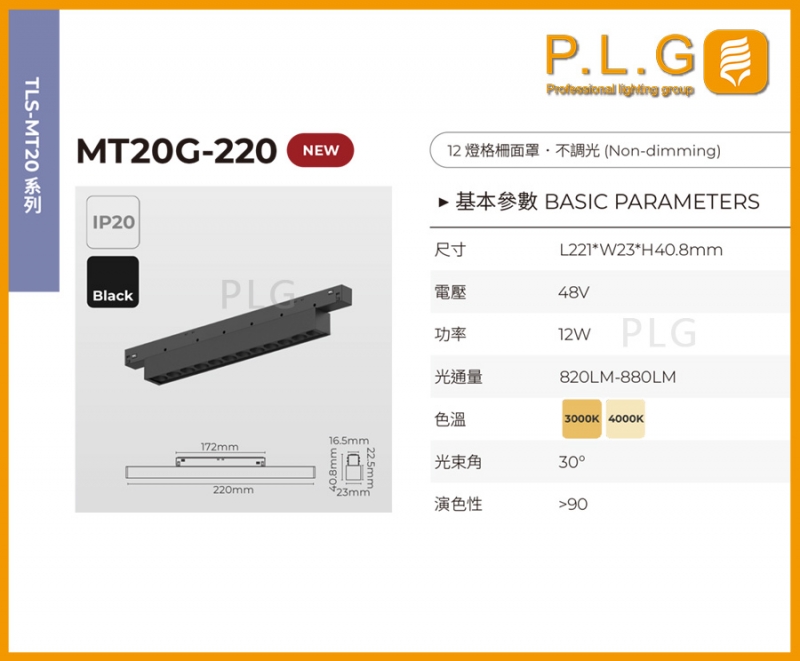 MT20G-220 磁吸軌道燈(12燈格柵面罩)